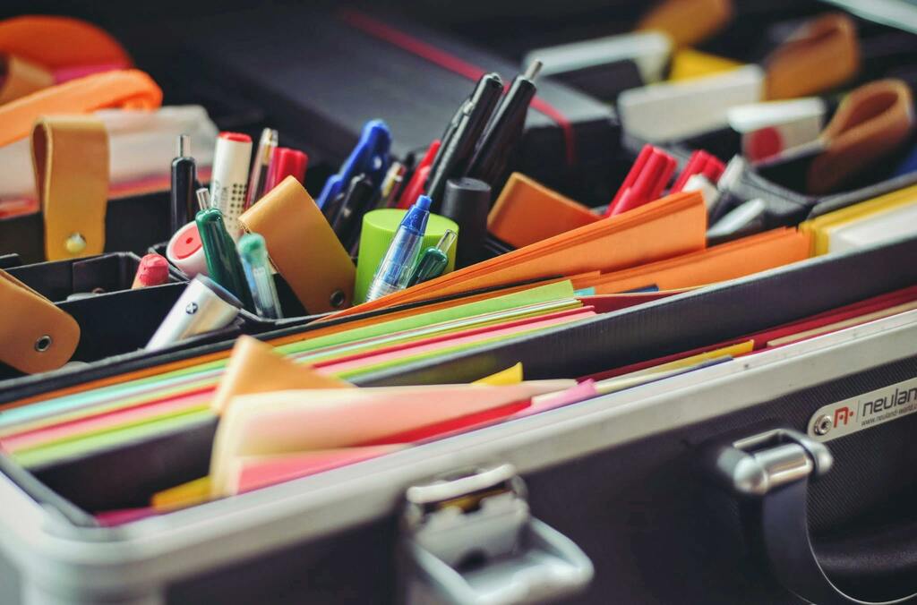 Supply of stationary, paper, paper clips, stamps, folders, pen, pencils and more.